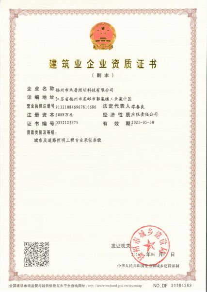 | 城市及道路照明工程专业承包叁级资质 |