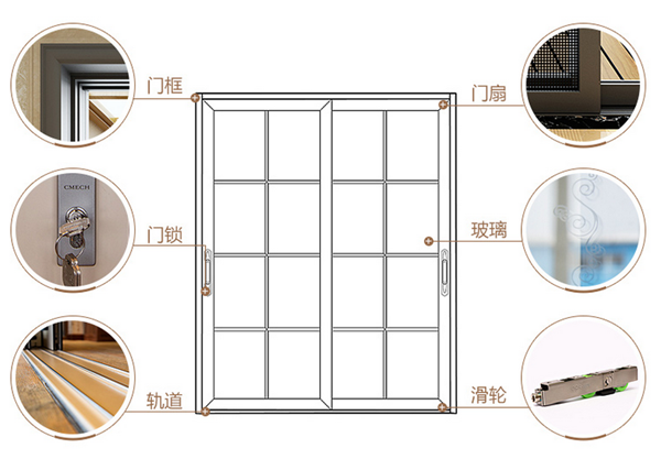 钛镁铝合金型材,特殊受力位置加厚处理,提高门扇自重,稳定推拉不伤手