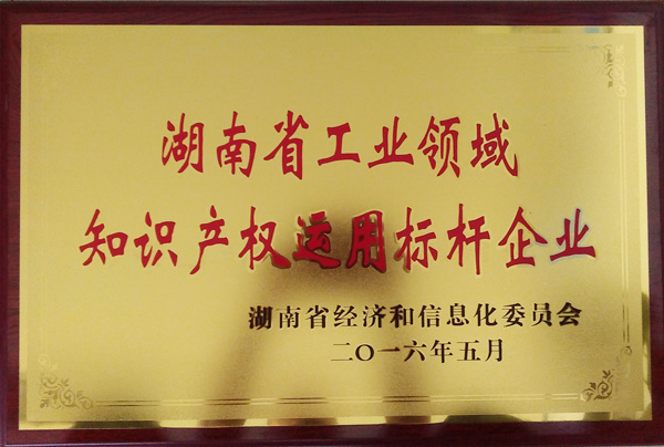 产品名称: 湖南省工业领域知识产权运用标杆企业 |