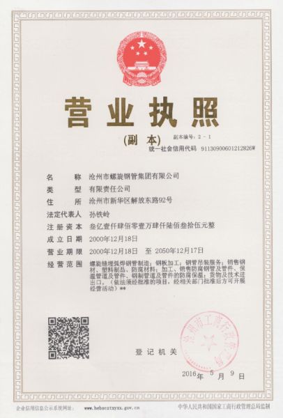 沧州市螺旋钢管集团有限公司网站由中国实验招标网制做维护。内容真实性及解释权归沧州市螺旋钢管集团有限公司负责。