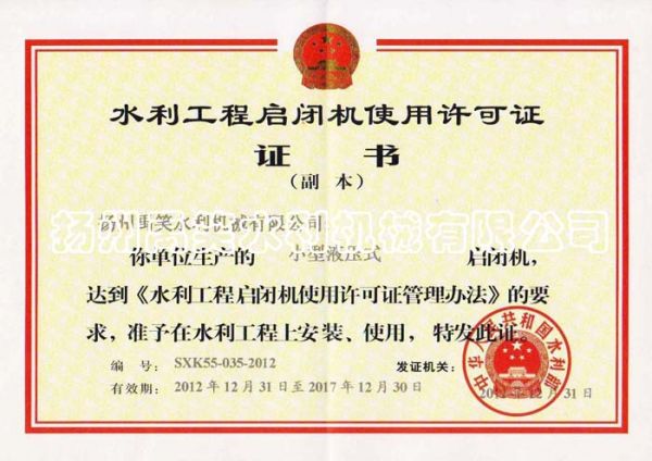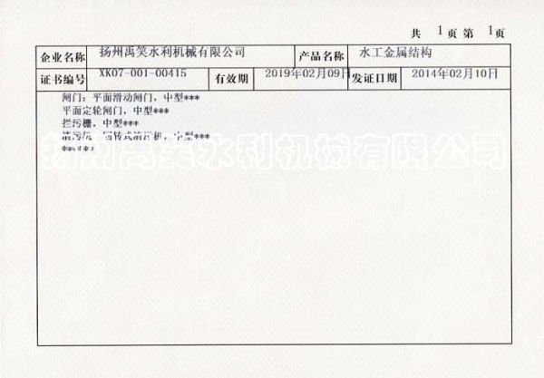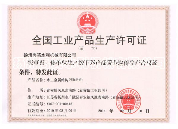 闸门生产许口证