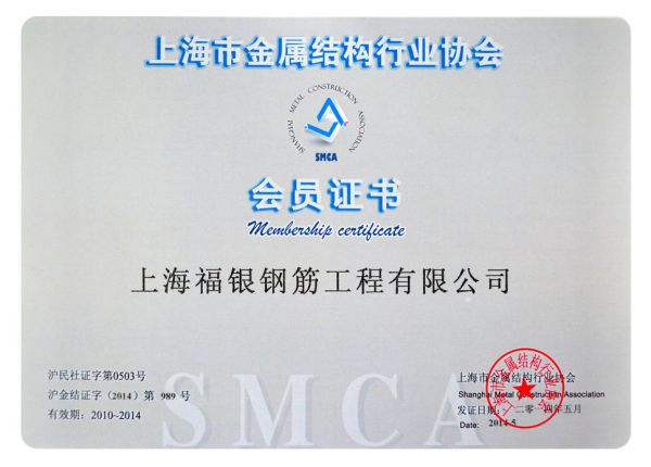 上海市金属结构行业协会会员证书