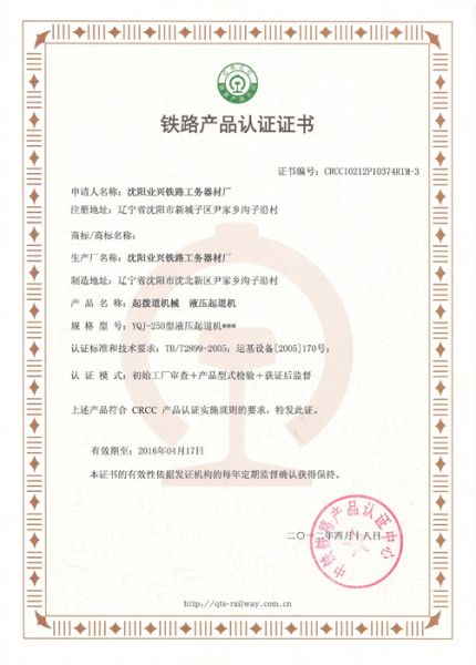 铁路产品认证证书9 发布时间: 2017-08-08 14:57:31 发布网站: 中国实验招标网