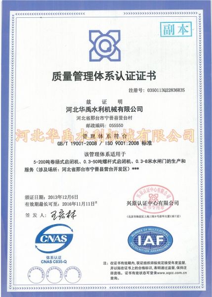 质量管理体系认证证书 发布时间: 2017-08-18 15:49:05 发布网站: 中国实验招标网